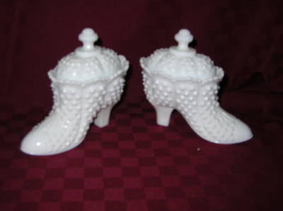 Vintage Shoe Milk Glass Hobnail Covered Candy Dishes(2)