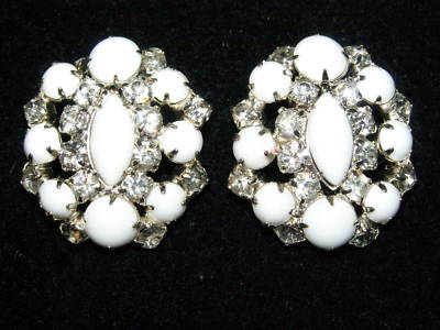 Beautiful Vintage Milk Glass & Rhinestone Earrings