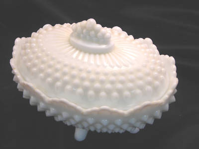 FENTON MILK GLASS, HOBNAIL, FOOTED BOWL WITH COVER