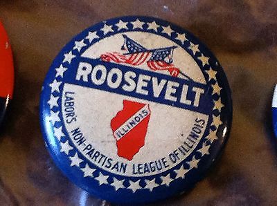 Title (ebay affiliate link): ROOSEVELT FDR POLITICAL PIN LABORS NON-PARTISAN LEAGUE OF ILLINOIS LITHO