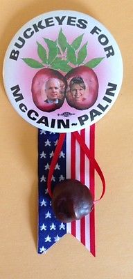 Title (ebay affiliate link): Buckeyes for McCain-Palin Pinback with Ribbon and Nut