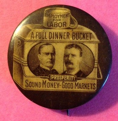 Title (ebay affiliate link): Popular McKinley/Roosevelt Full Dinner Bucket Pinback with Long Crack
