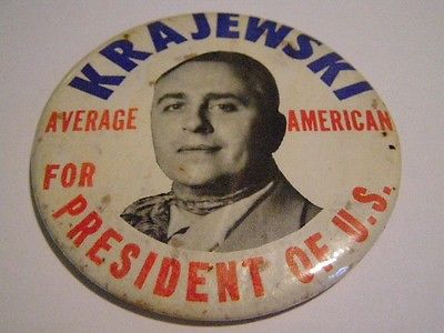 Title (ebay affiliate link): Rare Farmer Krajewski Average American For President Political Pinback Button !