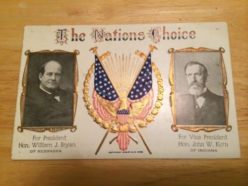 Title (ebay affiliate link): 1908 William Jennings Bryan Campaign Jugate Postcard Original Vintage