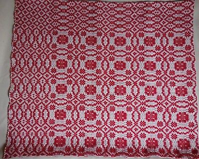 Primitive Vintage Red & White Woven Coverlet Piece Crafts Recycle Christmas
