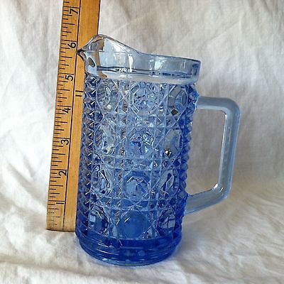 Vintage BLUE Depression Glass Hexagon Pattern Small Pitcher or Creamer