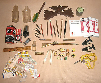 Estate Lot Vintage Antique Junk Drawer Mech Pencils Radio Tubes Coke Etc