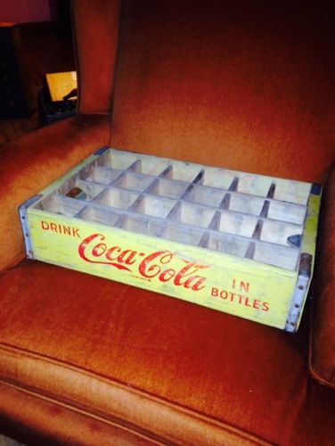 Title (ebay affiliate link): Antique Coca-cola Coke Crate Wood Soda 1969 Drink In Bottles Yellow Red Glass