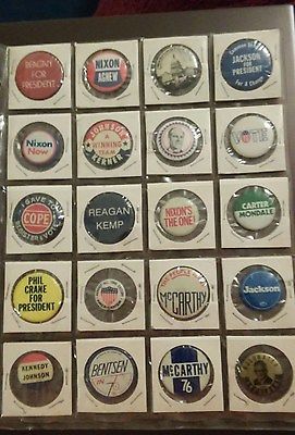 20 Vintage & Original Political Pins-Nixon,McCarthy,Crane,Reagan,Jackson,H2O