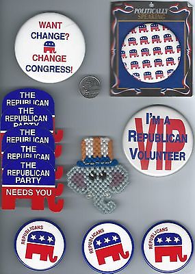 Title (ebay affiliate link): REPUBLCAN Party Mixed LOT-- Buttons, Pins, Stickers, Lapel Pins, Magnets