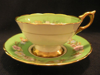 ROYAL STAFFORD TEA CUP AND SAUCER GARLAND IN GREEN PINK/WHITE/BLUE FLOWERS