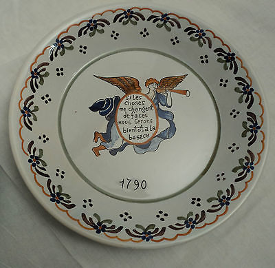 French Faience Revolutionary Plate 1790 , Nevers Angel with a flute