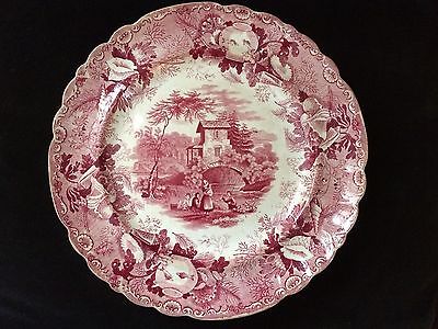 ENOCH WOOD & SONS 9 1/4" FISHERMAN PLATE~C. 1818-46~RED TRANSFERWARE PTN~RARE
