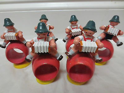 Set Of 6 Hand Painted Wood Napkin Rings German Boy With Accordion