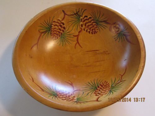ANTIQUE WOODCRAFTERY WOODEN BOWEL 10" HANDPAINED PINE CONES