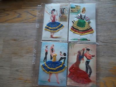 FOUR ELSI GUMIER MADRID EMBROIDERED POSTCARDS