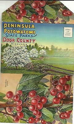Fold-out picture postcard Door County WI with 18 color photos circa 1940 Wis