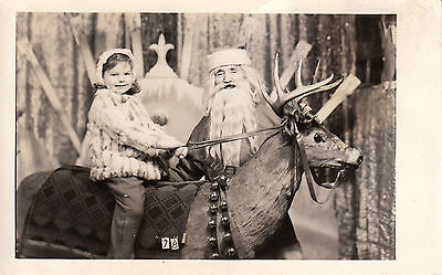 Title (ebay affiliate link): Santa Claus with Little Girl Riding Reindeer - Real Photo