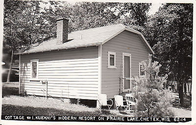 Title (ebay affiliate link): Cottage #1, Kuehni's Modern Resort on Praire Lake, Chetek, Wis. - Real Photo