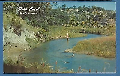 Long Pine, Neb/ Pine Creek/ man in water fishing/ chrome postcard