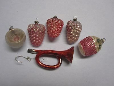 6 Antique Vintage Feather Tree Mercury Glass Christmas Ornaments