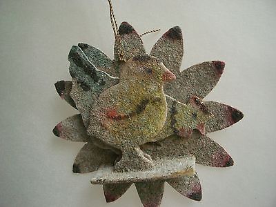 ANTIQUE Dresden cardboard 3D CHICKENS CHRISTMAS ORNAMENT