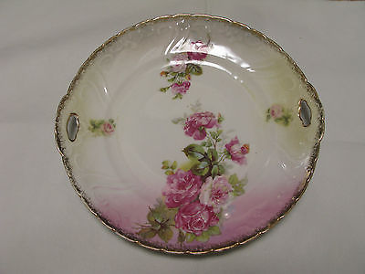 Antique Hand-Painted Porcelain China Plate - Handled, Pink Roses and Gold