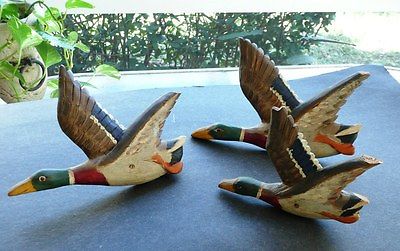 ANTIQUE AMERICAN FOLK ART HANDCARVED THREE GEESE/DUCKS UPSTATE NY
