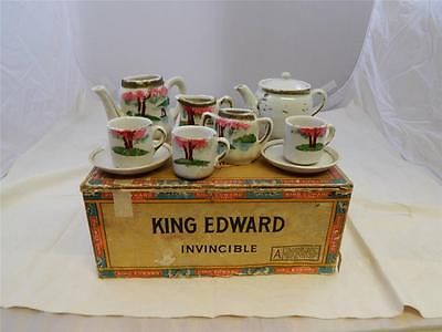 Antique Cold Paint Porcelain German CHILDS TEA SET TOY CHINA DISHES Cigar Box NR