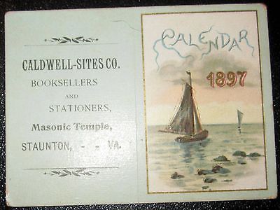1897 Calendar Staunton Virginia Masonic Temple Caldwell Bookseller