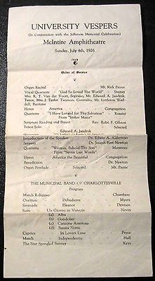Title (ebay affiliate link): 1926 Broadside University of VA Vespers McIntire Theatre Charlottesville Band