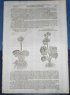 1633 ANTIQUE ENGRAVING JOHN GERARD BOTANY BOTANICAL SCIENCE RANUNCULUS CROWFOOTS