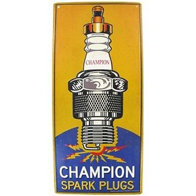 Title (ebay affiliate link): CHAMPION SPARK PLUGS Embossed Tin Sign FORD DODGE CHEVROLET MAN CAVE GARAGE SHOP