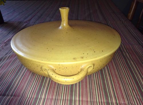 Title (ebay affiliate link): Modernist FRANK C MANN Vermont Art Pottery Ceramic Covered Casserole Bowl Yellow
