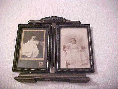 Title (ebay affiliate link): ANTIQUE DOUBLE SWIVEL PICTURE FRAME W/ORG. ANTIQUE BABY PICTURES-GRAY COLOR WOOD