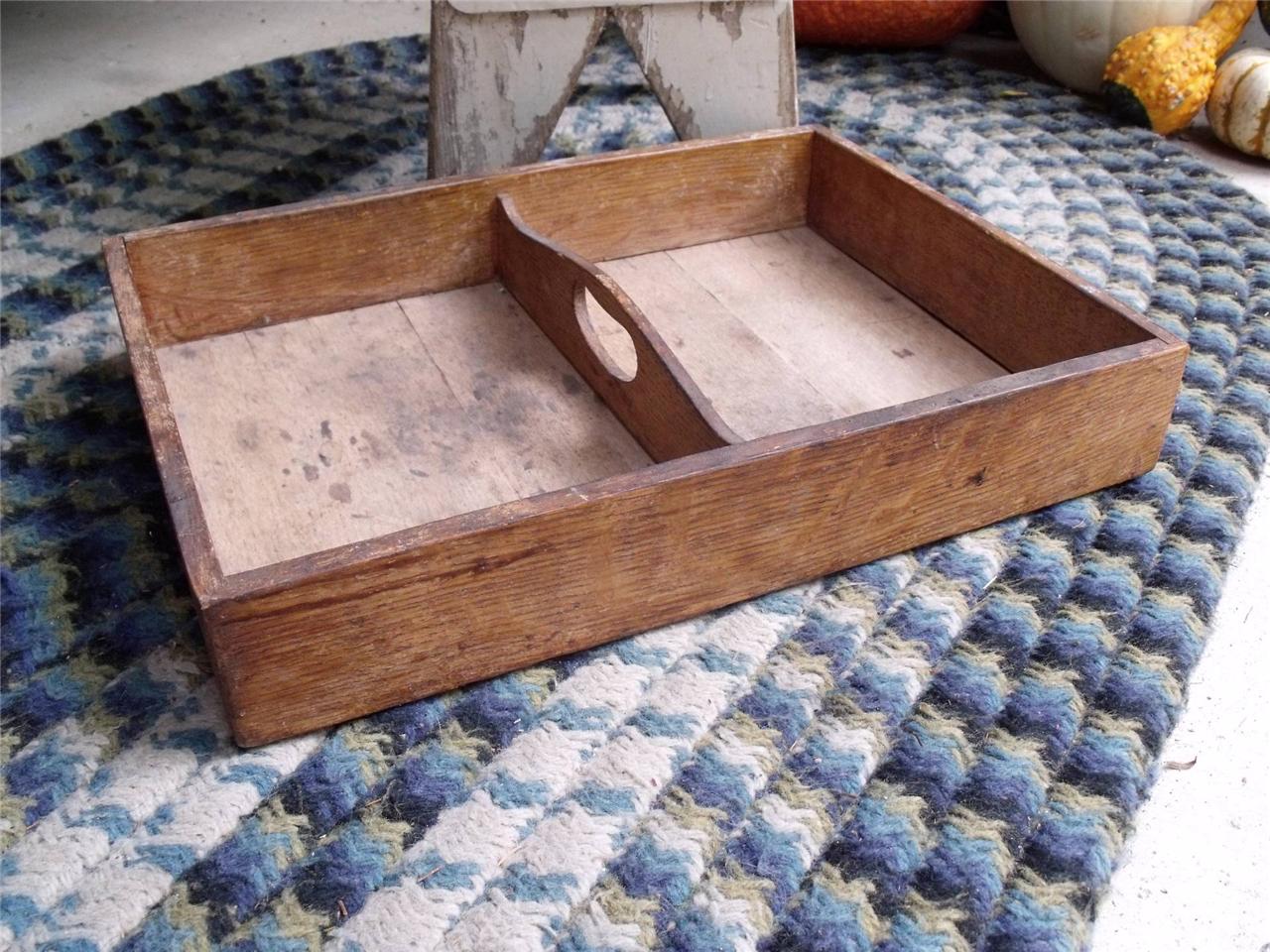 Rustic Primitive Antique Wood Cutlery Box Tiger Oak Quartersawn Oak