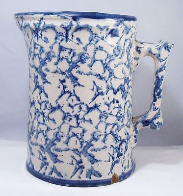 Antique Blue & White Spongeware Pitcher #1 AAFA Folk Art Ironstone