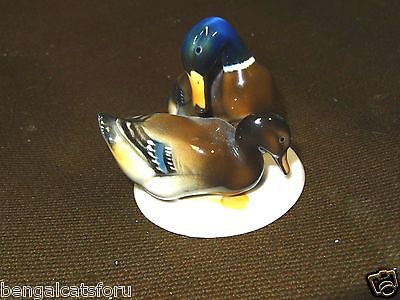 ANTIQUE SIGNED HUTCHENREUTHER GELB PORCELAIN PREENING MALLARD DUCK FIGURINE