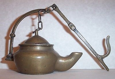 Title (ebay affiliate link): Antique Brass/Bronze Betty Lamp Whale/Grease Oil ~ complete with Hanger