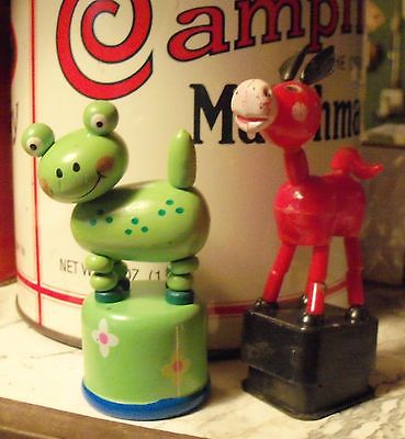 Thumb Puppet Collapsing Toy Vintage Plastic HORSE & Wood FROG