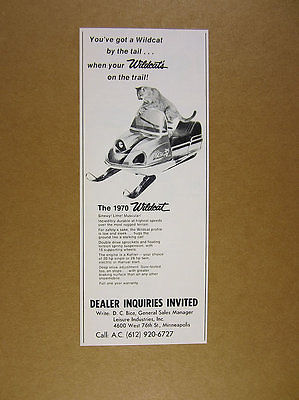 1970 leisure industries Wildcat Snowmobile vintage print Ad