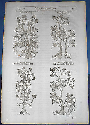 Title (ebay affiliate link): 1633 JOHN GERARD HISTORY OF PLANTS ENGRAVING BOTANY HERBALS RANUNCULUS CROWFOOTS