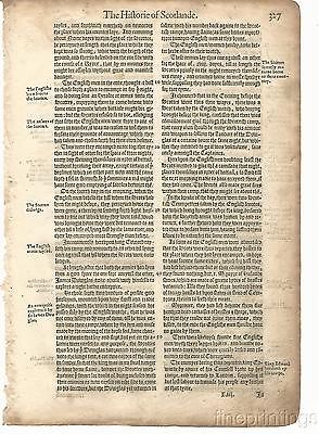 1577 LEAF FROM HOLINSHED CHRONICLES OF SCOTLAND