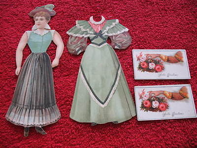 ANTIQUE 1894 VICTORIAN HOOD PILLS ADVERTISING PAPER DOLL, CLOTHING, CALLING CARD