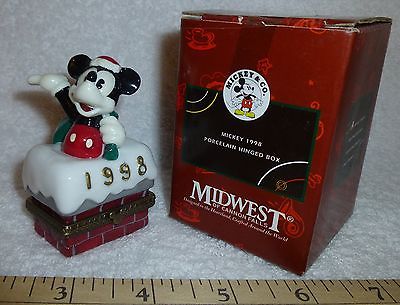 Disney Mickey Mouse Porcelain Hinged Box Santa Mickey in Chimney Waving 1998