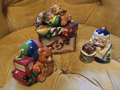 Fitz and Floyd set of 3 Christmas Porcelain Salt & Pepper and box