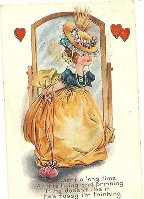 Title (ebay affiliate link): 1919 Color Postcard Valentine's Day, Girl in Front of Mirror