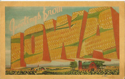 Title (ebay affiliate link): Greetings From Iowa - Farm and Corn Field - Linen Postcard