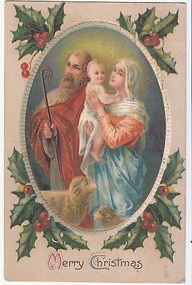 Merry Christmas Joseph & Mary Lambs Baby Jesus Vintage Postcard 1912