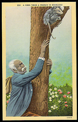 Title (ebay affiliate link): 252 COON TREES POSSUM Asheville NC 1930's LINEN PHOTO PC Black Racist Stereotype